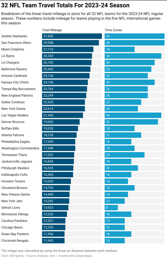 Az NFL kihozta a teljes menetrendjét a 2023-as évre. Habár az ellenfeleket eddig is ismerték a csapatok, sőt azt is, hogy kit fogadnak és kihez utaznak, de ezt ki kellett igazítani az európai mérkőzésekkel – most viszont már össze lehetett rakni, hogy melyik csapat mennyit utazik ebben a szezonban.