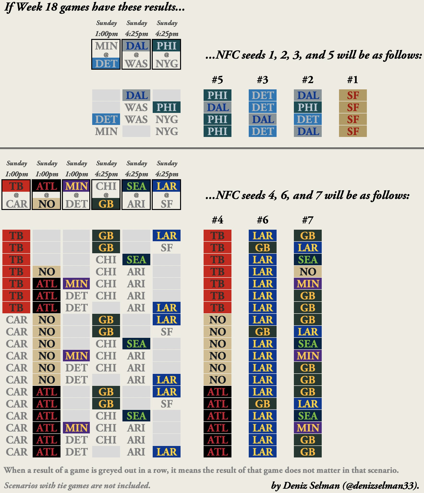Az NFC kiemelései pedig így nézhetnek ki az eredményektől függően (via Deniz Selman):