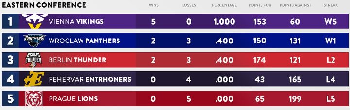 Az Enthroners egy hét pihenés után látta vendégül a csoportrivális Wroclaw Panthers alakulatát, amely számára kiemelt fontossággal bírt a találkozó. A lengyel csapat ebben a szellemben érkezett a pályára, végig dominálta a mérkőzést és végül 44-12-es pontarányú győzelmet aratott Székesfehérváron.