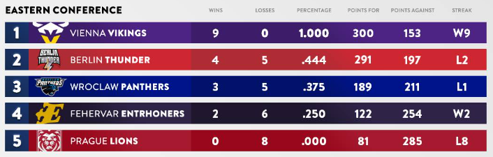 Az Enthroners számára folytatás szombaton (július 27) lesz, amikor a csoportrivális Wroclaw Panthers otthonába látogatnak. A két csapat már megütközött egyszer az ötödik fordulóban, akkor a Panthers tudott diadalmaskodni 44-12-es pontarányban. Viszont a Panthers nagyon szétesett az utóbbi hetekben, így bár koránt sem lesz könnyű dolga az Enthronersnek, bőven van rá esély, hogy történelmük során először jöjjenek ki győztesen a párharcból.