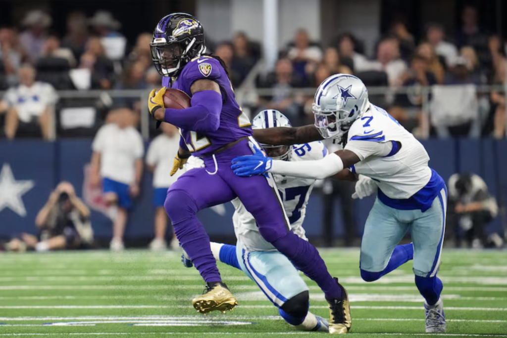 Ha valaki a harmadik negyed elején elment aludni, akkor most reggel felkelve nehezen hiszi el, hogy végül csak 3 pont lett a különbség. Az első 35 percben ugyanis kis túlzással felmosta a padlót a Cowboysszal a Ravens. A Hollók ugyanis gyorsan elkezdték szétfutni a dallasiakat, a taktika pedig működött: előbb Lamar Jackson, majd Derrick Henry volt eredményes. A félidő előtt még Rashod Bateman is feliratkozott a pontszerzők listájára, miközben a Cowboysnak csak két mezőnygólra futotta. Ebben nagy szerepe volt egyébként az újonc corner Nate Wigginsnek, aki a gólvonal előtt kiütötte CeeDee Lamb kezéből a labdát, turnovert kiharcolva.