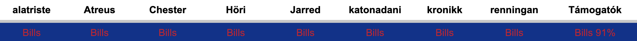 Azt gondolom, hogy matchupokat tekintve akár szorosabb mérkőzésre is lehet kilátás, mint ahogy azt az egyszeri szurkoló gondolná. Nyilván a Bills a jobb csapat, ráadásul idén egyetlen egyszer sem kaptak ki hazai pályán, a fogadóirodák szerint is touchdownnál nagyobb favoritok, szóval nyilván nekik áll a zászló. És simán lehet az is, hogy az offense megállíthatatlan lesz és átgyalogolnak a Broncoson. Azonban azt is gondolom, hogy a párharcokat figyelembe véve a Broncos akár szorosan is tarthatja a találkozót, hiszen a védelemben néhányszor jó eséllyel meg fogják tudni állítani Allenéket, a támadósor pedig a rövid játékokkal kellemetlen ellenfélnek számít a Bills defense szemében. Szerintem a Bills behúzza azért a mérkőzést, de nem lepődnék meg egy vártnál szorosabb találkozóban.