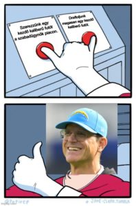 Ok az optimizmusra: Lehet érvelni amellett, hogy a Vikingsé a liga legjobb edzői stábja és a (második) legjobb kerete. A defense már tavaly is ligaelit volt (2. DVOA-ben), és most még a belső védőfal is kapott egy boostot. A támadósor meg top10 közeli volt még az év végi sérülésekkel tarkított beszakadás miatt is egy Sam Darnolddal, ráadásul itt meg a támadófal kapott hatalmas erősítést. Ha JJ McCarthy beválik, akkor ez egy Super Bowl-esélyes gárda. Abban meg bízhatunk, hogy Kevin O’Connell irányítósuttogó mellett ő is kellően jó lesz.