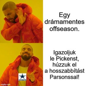 Ok az optimizmusra: Visszatér az irányító. Lehet sokak szemében ez nem olyan nagy dolog, de emlékeztetnék mindenkit, hogy Dak Prescott nem egész másfél éve 2. volt az MVP szavazáson. Pickens érkezésével a passzjáték sokkal jobban kinyílik majd mint az utóbbi két évben, a támadófal megerősítése miatt pedig a futójáték is bőven javulhat. A túloldalon a passzvédekezés továbbra is erőssége lehet a gárdának, hiszen Parsons és a cornerek elég jó alapot nyújtanak ehhez.