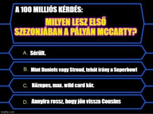 Ok a pesszimizmusra: A fentiekből adódik, hogy JJ McCarthy óriási kérdőjel nulla NFL-snappel a háta mögött, ráadásul egyébként is fiatal és tapasztalatlan prospectként érkezett a profik közé. Reális, hogy kvázi újoncként még gyenge szintet fog hozni, amit a kiváló környezet is csak átlag körülre emel majd fel, így még várni kell az áttörésre.