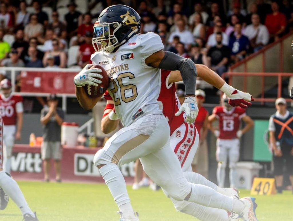 Nem tartott sokáig azonban a cseh offenzíva, büntetésekkel tarkított three and out után puntolták el a labdát. Ezt egy interceptionnel kapták vissza, hiába a jó Cole elkapás és a Ráthonyi Kende futás, Brett Pullman megdobta az első pickjét új csapata színeiben a félpálya körül, igaz, mentségére szóljon, egy megpattanó labdát húzott le Lautaro Frecha argentin safety. Patterson iramodott meg egy reverse játékból, és futott közel 40 yardot, azonnal jó helyzetbe hozva a csapatát. Itt büntetésekkel és sackekkel visszaszorultak a félpályán túlra, majd Javarian Smith feldobta a labdát (borzasztóan), ami Nemanja Vuckovic szerb safety kezében landolt, így a második negyedet a Fehérvári támadósor kezdhette meg.