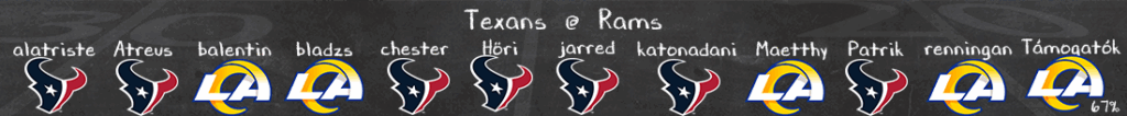 Ebben látom a legnagyobb esélyét a Texans-nak, Mixon hiányában muszáj lesz a levegőben haladni, és gyorsan passzoltatni Stroudot, ezt az OL-t ugyanis el fogja pusztítani a Rams front 7, emiatt kritikus lesz, milyen hamar tud Stroud szabadulni a labdától, mennyire sikerül ráerőltetni a gyors olvasásokat, és mennyi ideig tud majd menekülni a nagyobb passzokhoz. Ha ez nem sikerül, és (és ez egy nagy és) Stafford egy közel egészséges formát tud majd mutatni, akkor máris a Rams oldalán érzem az előnyt, és így a győzelmet is.