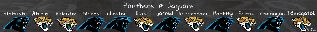Nagy futójátékra nem lehet majd a Jags részéről számítani, se Etienne se Bigbsy nem az a szint, hogy ilyen fal mögött eredményes legyen egy Derrick Brown ellen, így tehát a hazaiaknak a levegőben kell majd nyerniük – és ehhez amúgy minden adott is, számítok a Lawrence + Thomas show-ra. Ha a Panthers nyerni akar, akkor Young-nak is hasonló teljesítményre lesz szüksége, nála viszont nagyobb a kérdőjel az elkapók körül. Ha mind a ketten csillagharcosba kapcsolnak, akkor előkerülhetnek a védelmek, és itt talán a Jaguars felé billenhet a mérleg, esetleg a fiatal Panthers edge rusherek tudnak meglepetést okozni, és meccsben tartani majd a saját csapatukat.