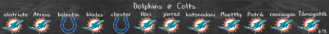 Nálam nagyon közel van egymáshoz a két csapat, és mivel a Dolphins offense esetében nagyjából várható, mire számítunk (még akkor is, ha McDaniel minden szezonra szeret kitalálni valami újat és extrát), így inkább az fog dönteni, milyen játékot mutat majd Daniel Jones és a Colts offense, és mennyire lesz életképes a Miami védelem, főleg a secondary. És egy érdekesség: a Colts 12 éve nem tudott meccset nyerni az első játékhéten, a legjobb eredményük egy döntetlen. És most itt a lehetőség DJ előtt, hogy ezen változtasson.