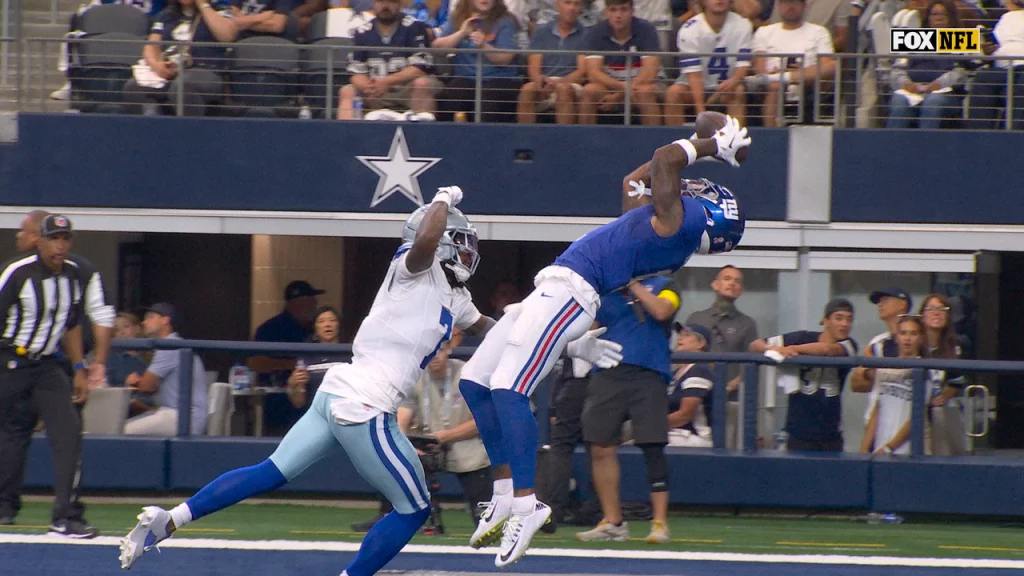 A Giants először egy 70 yardos akció végén, az újonc Cam Skattebo 1 yardos TD-jével vette át a vezetést. Erre a Cowboys egy 85 yardos TD-drive-val válaszolt. A következő New York-i támadás azonban úgy tűnt, hogy elakad, azonban Russell Wilson 10 évet visszautazott az időben és egy 4&4-re kiosztott egy 32 yardos TD-t.