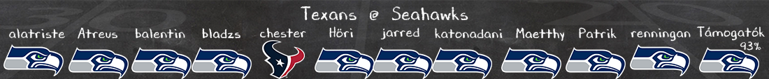 Akármilyen kiváló a Seattle offense, nekik sem lesz könnyű dolguk DeMeco Ryans védelme ellen. Ami segíti őket, az a kissé jobb támadófal (azért Will Anderson és Danielle Hunter sokat lesz majd Darnold közelében), egy bőven stabil irányító és kiváló támadófegyverek, mint Walker vagy JSN. Itt érzem azt, hogy jelentős előnyben lehetnek a hazaiak; hiába a Texans remek védelme, túl sok a jó játékos a Seahawks támadósorában, és amíg Darnold nem kezd el hülyeségeket csinálni, addig a futás mellett a levegőben is fog mozogni a labda. A legnagyobb esélye a vendégeknek, ha folyamatosan nyomás alatt tartják majd Darnoldot, de nem érzem, hogy ez elég lesz majd Stroudék kimentésére.