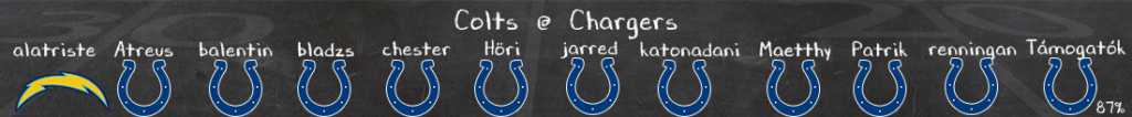 Nehezebb a helyzet a túloldalon, a támadófal borzalom, Hampton sérülésével visszaesett a futójáték, és hiába a továbbra is remek Justin Herbert, túl sok tényező hátráltatja a passzjátékot is. Ennek ellenére lehet termelni a yardokat a Colts védelme ellen, Kenny Moore visszatérése már esedékes, cserébe Charvarius Ward dőlt ki most agyrázkódással, így megint egy szedett-vedett secondaryre kell számítani, amit bőven ki tud használni Herbert. Mint ahogyan a gyenge futásvédelem ellen is látom, hogy Kimani Vidal RB1-nek fog kinézni; a legnagyobb gond ezzel együtt mégis a támadófallal van – ameddig ott nem történik előrelépés, nagyon nehéz megbízni a Chargersben.