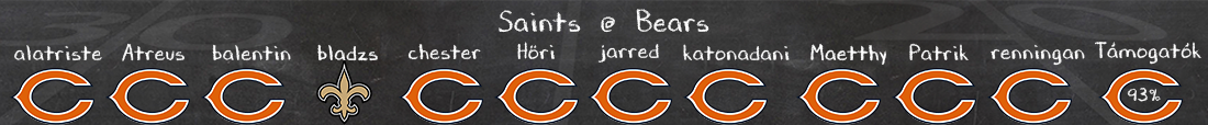 Nem mintha a Bears védelme olyan acélos lenne, lehet futni és passzolni is ellenük, utóbbi Spencer Rattlernek nem megy rosszul, várhatóan most is jól fogja majd osztogatni a labdákat Olavénak és Shaheednak, még akkor is, ha előbbi nem 100%-os. Az eddig stabil futójáték most viszont kaphat egy pofont, Alvin Kamara ugyanis nem edzett még a héten, játéka kérdéses. Nem nézett ki rosszul viszont a helyettese, Kendre Miller, aki akár komolyabb szerepet is kaphat ezen a meccsen, és a Bears védőfala ellen azért van lehetőség futni, még akkor is, ha a New Orleans támadófala a leggyengébbek között van idén – ennek a két egységnek a csatája lehet az egyik kulcskérdése a meccsnek.