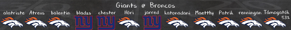 A Giants kisebb meglepetésre egy hete a földbe döngölte a regnáló bajnokot. Főleg a földön dominál a csapat, Cam Skattebo a legszebb egyetemi napjait másolja, míg Jaxson Dart ugyan nem néz ki rosszul a levegőben sem, de ő is megállíthatatlannak tűnik, amikor a lábain indul meg. Malik Nabers és Darius Slayton hiányában a kisebb nevű elkapók tudtak fellépni a Philly ellen, erre most is szükség lenne, a Denver védelme ugyanis más szintet képvisel idén. Főleg a pass rush az, ami történelmi szinten is kiemelkedő számokat produkál, és ugyan az Eagles nem létező siettetését jól kontrollálta a Giants nem épp veretes támadófala, most egy egészen más ellenfél jön majd szembe, Nik Bonittóval az élen.