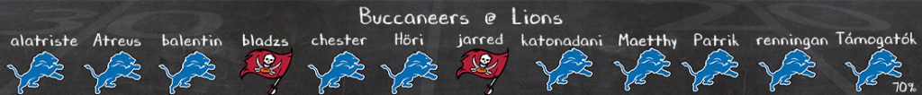 A labda túloldalán is inkább a hazaiak néznek ki jobban. Taylor Decker bal tackle már várhatóan játszani fog, így a folyamatosan javuló OL-ben nem lesz már hiányzó. Mindenhol máshol meg elit ez az offense, Goff, St. Brown, LaPorta, Gibbs, Montgomery – a nyitó meccs óta csak Spagnulo védelmének sikerült őket lelassítani, és nem igazán látom, hogy ez most majd sikerüljön a Bucs defense-nek. Hiába a remek futás elleni védelem, Lavonte David várhatóan nem játszik, így a Gibbs+Montgomery páros egyből jobb helyzetből indul. Ha nem lenne ennyire üres a Tampa támadósora, akkor bizakodóbb lennék az esélyeiket illetően, így viszont, hogy a védelmüknek kellene előrelépnie, sokkal nehezebben látom az ő sikerüket.