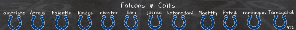 Nem jobb a helyzet az offense-ben sem, a két kezdő guard még nem edzett a héten (Bergeron már biztosan out), így okozhat gondot a pass rush az amúgy is közepes szezont futó Penix számára. Ami remek csata lesz, az Bijan Robinson és a Colts jó futásvédelme (bár utóbbi kapott egy pofont azzal, hogy Deforest Buckner IR-re került), valamint persze mindenki nagyon várja, mit tud majd a frissen érkezett Sauce Drake Londonnal szemben – kellett nagyon az erősítés a coverage-be, bár erre a fajta robbantásra nem sokan számítottak. Ha a Colts vissza tud térni az eddig látottakhoz, akkor a támadósoruk biztosan előnyben lesz. Nagyobb kérdés a túloldal, Penixnek a jobbik formáját kell hoznia, és a futásnak is stabilan kell majd működnie, ha a Falcons meccsben akar maradni.