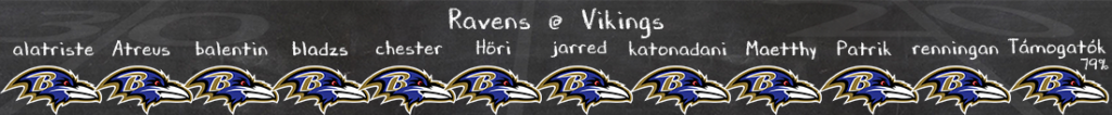 Mind a két csapatnak nagyon kellene a győzelem. J.J. McCarthy visszatért, vele együtt megjött a korrekt irányítójáték, és ez a csapat egyből megmutatta, mit is vártunk tőlük szezon előtt. Semmi sem volt lehengerlő az offense-ben, de minden jól működött, és így jött a meglepetés győzelem is. A QB visszatérése mellett a két kezdő OT egészsége is rendben, Aaron Jones miatt kell most kissé aggódni, az ő sérülésének a mértéke lehet kulcsfontosságú. Nagyobb rejtély a Ravens védelme, nagyjából most először láttuk őket a közel egészséges állapotban, és a Dolphins offense ellen jól helyt is álltak – nagy kérdés, mire mennek majd a feltüzelt Vikings ellen, mert ez egy egészen más teszt lesz, mint a Miami ellen.