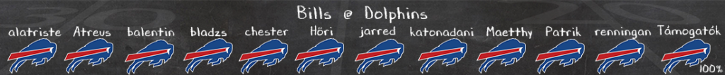 Kötelező Bills győzelemnek kellene következnie. Az amúgy is erős offense nagyjából tökéletes volt a Chiefs ellen, az egyetlen problémájuk most csak az lehet, hogy James Cook kisebb sérüléssel bajlódik, de akár vele, akár nélküle nem kellene, hogy problémát okozzon nekik a Miami védelme. Ami továbbra is romokban hever, egyedül futás ellen középgyengék, mindenhol máshol liga vége teljesítményt látunk. Több fontos kezdő is sérüléssel küzd ráadásul (Douglas CB, Melifonwu S, Robinson Edge), csak akkor látom bármi esélyét, hogy akárcsak lelassítsák a Buffalo támadóit, ha Allennel együtt az összes skill player életük legrosszabb teljesítményével rukkolna elő.