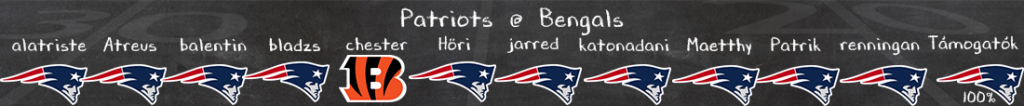 A Joe Flacco lufi egy kissé kipukkadt a Steelers védelme ellen, ezen a meccsen semmi sem jött össze. Azt, hogy futás nem volt, vagy hogy a támadófal gyenge azt már megszoktuk, de most a Báró sem volt képes megtalálni a sztár elkapóit. Javítási lehetőség lehet most a Patriots ellen, bár a védelem folyamatosan fejlődik már sokkal inkább a liga első felébe, mintsem a szürke középmezőnybe tartoznak (bár az ellenfelek is könnyűek voltak). Itt főleg a pass rushnak kellene fellépnie, ez ellen a támadófal ellen lenne keresni valójuk Chaissonéknak, és ha sikerrel kergetik meg Flaccót, azzal el is veszik a Bengals minden létező fegyverét. Pletykálják Joe Burrow visszatérését, de erre kicsi az esély, mint ahogy arra is, hogy a Cincinnati legyőzze ezt a New Englandet.