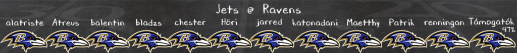 Nem jobb a helyzet a Jets offense-ben sem, Fields hivatalosan is leültetésre került, Tyrod Taylor érkezik a helyére, de vele se elvárás, hogy majd beindul a passzjáték; Garrett Wilson kiesésével eltűntek az értékelhető elkapók. Legalább a támadófal továbbra is korrekt, így érdekesebb lehet a Breece Hall vezette futójáték, de pár megvillanáson kívül nem számítok arra, hogy túl sok sikere lesz majd a földön a Jetsnek; a Baltimore védői is tudják, elsősorban a futást kell majd elvenni, és a sérültek visszatérésével ez az egység is sokkal jobban néz már ki (meg Kyle Hamilton zsenijével persze). Nem sok esélye lesz a vendégeknek ezen a meccsen, a Ravensnek meg minden győzelem létfontosságú már.
