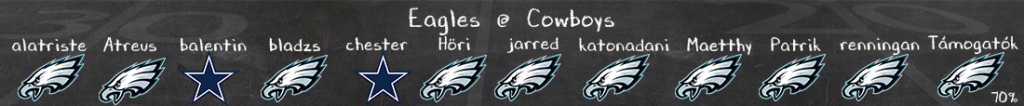 A nagyobb élvezetek talán a túloldalon várhatóak, Dak Prescott MVP közeli szezonja még mindig tart, kisegíti Williams remek futójátéka és a parádés Lamb+Pickens páros a levegőben. Most viszont a liga jelenleg legforróbb védelme érkezik, a bye-week óta semmilyen szinten nem lehet haladni az Eagles védelme ellen, csodás a pass rush (ami a Dallas OL ellen is aktív lehet), a futás csírájában van elfojtva, és már nem csak a sztárok mutatnak jól coverage-ben. Ha majd most Prescott és a támadói képesek lesznek feltörni a védelmet, akkor jó esélyei lehetnek a hazaiaknak, ha viszont csak akadozni fognak, akkor még a semmilyen Eagles offense is képes lesz több pontot szerezni náluk ez ellen a védelem ellen.