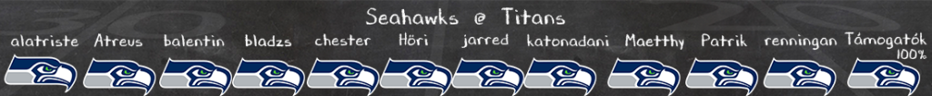 Mint ahogy Cam Wardéknek sem lesz sok sikerélményben részük ez ellen a védelem ellen; a Seattle D tartotta meccsben a csapatot a Rams ellen, még mindig minden tekintetben egy elit defense ez, amit lehet, hogy egy Stafford fel tud törni, de a Titans támadóitól erre nem számíthatunk. Ward gyenge, a támadófal sem állt össze, futójáték sincsen; egy pontszegény szenvedős mérkőzésen (lásd a Texans ellen) meccsben tudnak maradni, de a Seahawks egy másik szintet képvisel, ha félgőzzel és szürkén is, de gond nélkül kellene ezt a meccset Darnoldéknak behúzni, amivel nagyjából be is biztosítanák a rájátszás részvételüket.