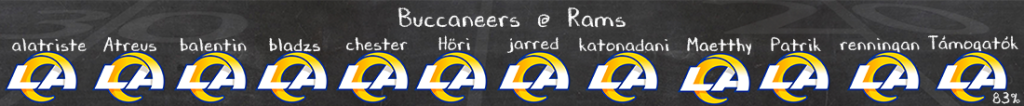 Nagyobb kérdés, mire megy majd Mayfield ezzel a csodás Rams védelemmel. A támadófal előtte sokkal egészségesebb nem lesz már idén, ez ellen a pass rush ellen viszont nagyon kevés OL tud csak minőségi ellenállást felmutatni. Mint ahogy minden héten, most is arra várunk, hogy visszatérjen Bucky Irving futni (kisebb esély) és Chris Godwin elkapni (nagyobb esély), mind a kettejükre nagy szükség lenne a labda mozgatásához. Velük együtt sem biztos azonban, hogy feltörhető lesz a Rams védelme, akár a földön akár a levegőben a liga legjobbjai között vannak a McVay legényei. Túl sok minden szól a Rams mellett ahhoz, hogy az ember ne őket hozza ki győztesnek, de remélhetőleg a Bucs képes lesz tartani az iramot, és újfent egy jó meccset játszik egymással a két csapat.