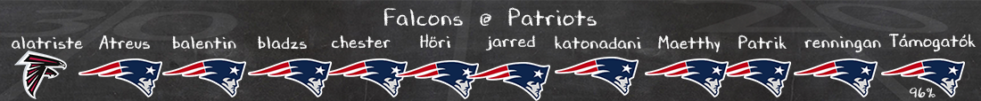 A liga egyik legérthetetlenebb csapata a Falcons, néha megverik a Billst, máskor a pályán sincsenek egy Dolphins vagy egy Panthers ellen. Penix egyelőre továbbra is felemás, ráadásul most egy sérüléssel is küzd, mellette viszont minden más adott lenne egy jó támadósorhoz, erős fal, jó elkapók, Bijan Robinson. A Patriots defense ellen még akkor is kellene tudniuk haladni, ha talán futás ellen a legerősebb ez az egység, ami Bijannal az Atlanta legnagyobb fegyvere lehet – de közben Penix kérdéses játéka, valamint a Pats defense javulása miatt nem feltétlen várom, hogy magabiztos és átütő lesz majd a Sólymok támadósora.