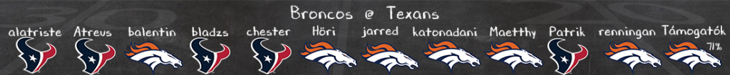 A Houston támadósor is a szebbik arcát mutatta a 49ers ellen, a hatodik falemberrel ők is találtak egy jó megoldást arra, hogy elfedjék a gyengeségeiket, ami továbbra is a pocsék támadófal. Stroudnak gyengébb védelmek ellen voltak jobb meccsei, de egy Seahawks szintű D ellen megint tehetetlen volt, persze ebben nem segítettek a hiányzók sem. Most sérültekkel már jobban állnak, ha Collins átmegy a protokollon nagy eséllyel pályára lép, és minden fegyverre szükség lesz majd a Denver védelme ellen, akkor is, ha a sztár corner Pat Surtain nem tud majd pályára lépni. A támadófalon nagyon sok fog múlni, de a két keretet összehasonlítva; védelemben amiben jó a Texans, abban jó a Denver is, ahol viszont nem erős a Houston ott továbbra is legalább korrekt a Broncos, így a vendégeknél érzem az előnyt.