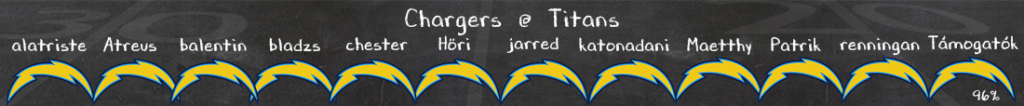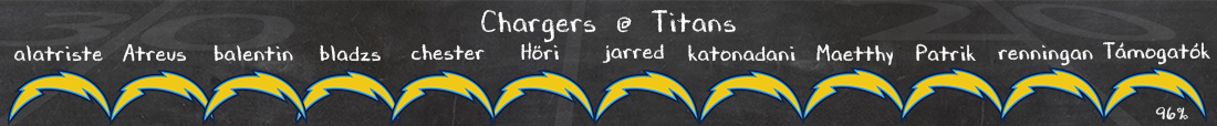 Nem sokkal jobb a helyzet a labda túloldalán, Ridley még mindig hiányozni fog az amúgy sem a célpontokban bővelkedő támadósorból, Ward még mindig nyögi az 1/1-esek terhét, és a futójáték se képes kisegíteni az offense-t. Nem lesz könnyebb a Chargers védelme ellen, mind futás ellen, mind levegőben rendben van ez a defense, és ugyan voltak sérülések, főleg a secondaryben (például Derwin James), jelenleg úgy tűnik, minden kezdő játékra kész lesz. Ami továbbra sincs LA-ben, az a pass rush, így talán ennyi szerencséje lesz Wardnak, hogy több ideje lesz majd a célpontjait keresni. Ezzel együtt sem várom, hogy képes lesz a Titans meccsben maradni a Chargersszel, és főleg Herberttel szemben.
