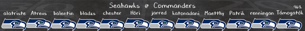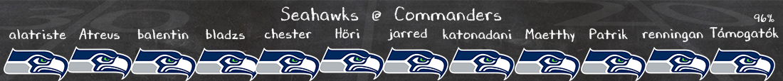 Sokkal szebbek a kilátások a Seattle támadóknál, egy jó pass rush azért képes a támadófal fölé kerekedni, de jellemzően jól védik Darnoldot, aki idén is remekül passzolgat (JSN még mindig elit), mindezt a liga egyik legjobb futójátéka is kisegíti – a jobb védelmek ellen is tud haladni a Seahawks, hát még a rosszabbak ellen. És most itt az utóbbiról beszélhetünk, Washingtonban sem rossz a front 7, de akár futás ellen, akár pass rushban nem várom, hogy túl sokszor és túl hatékonyan tudják majd lassítani Darnoldékat, a levegőben meg egyértelműen uralhatja a játékot a Seahawks. Nagy ugrás kellene a Commanders offense-től, hogy meccsben maradjanak, de ezt nem nagyon látom jönni, nagyon egyben van ez a Hawks.
