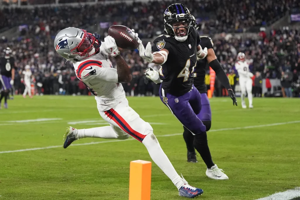 Komoly rangadóval zárult nap, és a találkozó fel is ért az elvárásokhoz. A pontszerzést pár szép Zay Flowers elkapás után Derrick Henry nyitotta meg bő 20 yardról, majd a Patriots is elment a red zone-ba, de ott Marlon Humphrey lehúzta Drake Maye passzát. Azonban nem sokáig örülhettek a Hollók, ugyanis Henry fumble-t vétett, ami után nem sokkal névrokona, Hunter Henry szerzett hatpontost. A félidő előtt még egy-egy mezőnygólt berúgtak a felek, ám a legfontosabb történés az volt, hogy Lamar Jackson háta megsérült és már nem is tudott visszatérni a pályára.