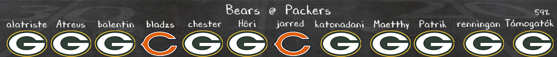 A Macik támadósora csodás játékkal széjjel futotta a regnáló bajnok elvileg top 10-es védelmét, ilyen futójátékkal el is tudták velünk feledtetni, hogy amúgy a passzjáték borzasztó volt. És általában is igaz, hogy Caleb Williams nem segíti a csapatát győzelemhez – de ami fontos, egy ideje nem is feltétlen hátráltatja. Pechükre egy remek védelemmel találkoznak most; hiába a top5-ös szintre javult támadófal, a Packers front 7 nagyon erős futás ellen, és Parsons vezetésével passzsiettetésben is kiválóak, így nem valószínű, hogy most majd ugyanúgy tud dominálni a futójáték, mint egy hete. Így fel kellene lépnie a passzjátéknak, de itt meg akkor előjönnek Williams limitáltságai. Ha nem tud most sem szintet ugrani a fiatal QB (vagy nem kapitulál teljesen a Packers D), és ha Love nem dobál interceptionöket (amikből amúgy kivételesen sokat gyűjt a Chicago védelem), akkor azért jelentősebb esélyekkel lép majd pályára a hazai Sajtos csapat, mint a vendég Medvés alakulat. És újra egy olyan meccs, ahol van értelme a rájátszás százalékokra tekinteni: Packers győz 96%, veszít 74%. A Bearsnél ez 92% és 65%. Nagy a tét.