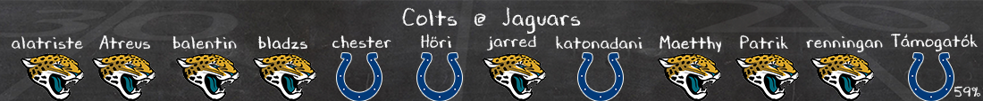 Hatalmas AFC South rangadó is vár ránk. A Jaguars a Houston elleni leégés után újra olyan jól (ha nem jobban) mutat, mint a szezon elején. Lawrence továbbra sem viszi hátán a támadósort, de egy stabil szinten osztogat, teszi mindezt egy korrekt támadófal mögött jó futójátékkal kiegészítve. Látszik, hogy fontos volt megszerezni Jakobi Meyerst, az elkapó hamar WR1-gyé nőtte ki magát (már csak Brian Thomasnak kéne megérkeznie mögé). Ezzel együtt a futójáték az offense szíve, és most is támaszkodhatnak majd erre, Buckner kiesése óta nagyon rossz a Colts futás védekezése. Pechükre a többi fronton sem teljesítenek olyan jól, mint korábban, hiába tért vissza már Ward is a secondarybe, most Sauce Gardner esett ki egy súlyosabbnak tűnő sérüléssel.