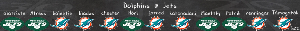 Egy újabb kicsi meccs, de az elmúlt hetek alapján garantált szórakozással. Jót tett a Jetsnek Tyrod Taylor megérkezése, tőle sem szabad sokat várni, de a gyengébb védelmek ellen jól osztogat, sokat segít ebben John Metchie és Adonai Mitchell, mindkét elkapónak jót tett a levegőváltozás. A támadófal is korrekt szintet hoz, Breece Hall meg egyedül képes elvinni hátán ezt a támadósort – van meglepetés potenciál ebben az offense-ben. Ami bőven kijöhet megint a Dolphins defense ellen: ugyan már messze nem övék a liga legrosszabb védelme (futás ellen egész jók, és a coverage sincs már elveszve), de a pass rush és az általánosan jó DL még mindig hiányzik, és így a Jets OL-nek várhatóan lesz alkalma mind Hallnak mind Taylornak időt és lehetőséget biztosítani a haladáshoz.