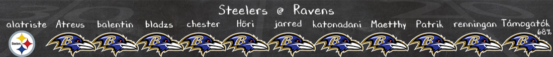 Hatalmas rangadó az AFC Northban – bár csak alátámasztaná ezt a csapatok teljesítménye is. A Ravens támadósor ugyanis borzasztó, hiába tért vissza Lamar Jackson, és mutat stabilabb teljesítményt előtte a támadófal, a passzjáték egyáltalán nem akar működni – és ezért hibáztatható ugyanúgy Lamar (és az egészsége) mint ahogy Harbaugh és Monken is. A futójáték sem az igazi, de legalább Henry még meg tud néha villanni; ezzel együtt is ez az offense nem hoz jelenleg rájátszás szintet. Most a továbbra is gyengélkedő Steelers védelem ellen kellene majd mutatni valami, passz ellen még úgy ahogy rendben van a Pittsburgh (köszönhető ez a továbbra is remek pass rushnak), de futás ellen kifejezetten gyengék; újabb lehetőség Henry előtt, hogy bizonyítsa, még mindig ő a Király.