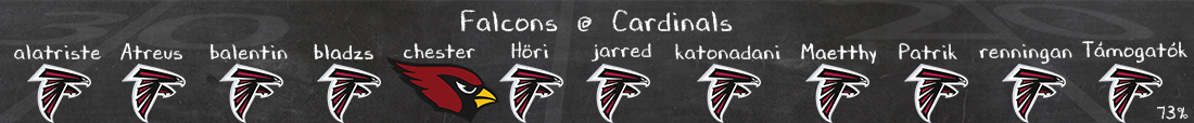 Volt pár bulisabb meccse az Arizona offense-nek Brissett vezetésével, de amint szembejöttek a jobb védelmek (mint Rams, vagy Texans) máris csak a gargabe time fantasy pont termelés jutott a sivatagiaknak. Futójáték nincs (mondjuk futók sem), a támadófal gyenge és sok a sérült, de Brissett még mindig átlagon felüli, Michael Wilson és Trey McBride közreműködésével pedig azért érkeznek a pontok a levegőben. A kezdeti jobb teljesítmény után már visszaszürkült a középmezőnybe a Falcons védelme, csak az elmúlt pár hetet nézve már inkább annak is az aljához tartoznak. Pont emiatt nem kizárt, hogy kaphatunk egy sok pontos, izgalmasabb derbit, de összességében a labda mind a két oldalán talán egy kicsivel több van a vendégek tudásában és személyzetében is.