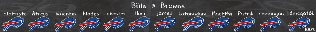 Érdekesebb lehet a túloldal, a Buffalo védelme ugyanis remekül néz ki passzok ellen, a földön viszont annyira rosszak, hogy az amúgy futni nem tudó Pats is jól mutatott ellenük Henderson vezetésével. Így tehát sokkal inkább lehet jó napja Judkinsnak, mintsem Sandersnek – utóbbi egy remek meccs után egy hete pocsékul festett a Bears védelme ellen. A Cleveland támadófalában továbbra is sok a sérült (a teljes jobboldal játéka megint kérdéses), a remek Bills pass rushnak nem kéne, hogy sok gondot okozzon ez az OL. Sima Buffalo győzelemnek kellene születnie, jó lenne, ha még arra is jutna idejük, hogy tesztelgessék, hogyan tudnának javítani a futásvédekezésükön – nagy szükség lenne erre a rájátszáshoz közelítve.