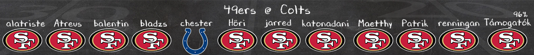 Na de akkor mégis, hogy lennének egymáshoz közel? Hát úgy, hogy a 49ers védelem nagyon gyenge. Tudtuk eddig is; sok a sérült, még a cserék cseréinek is fáj valamije, de amikor egy Titans offense képes átszaladni rajtuk (és Cam Ward sem osztogatott rosszul a coverage ellen), akkor ott van miért izgulni. Phillip Rivers nem fogja lehozni a csillagokat, de kiválóan olvas, a rövid passzai óramű pontossággal fognak érkezni a továbbra is remek támadófal mögül (nyomás nem nagyon lesz rajta), és akkor még nem beszéltünk Jonathan Taylorról, akitől elvárás, hogy az idei teljesítményéhez méltó mennyiségű yardot pakoljon fel egy, az elmúlt öt fordulóban bottom 10-be visszaesett futásvédekezés ellen. Sok pontra számítok, és így végül egy szoros meccsre is, de ezzel együtt is úgy érzem, nem sikerül az Indynek megmenteni a rájátszását, a 49ers viszont, még ha szűkösen is, de be fogja biztosítani a sajátját.