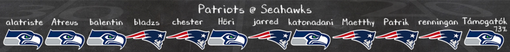Azt, hogy a Patriots agyonveri a Seattle-t, kizártnak tartom. Az viszont benne lehet, hogy a Seattle nagyobb különbséggel nyer. Én mégis arra tippelnék, abban reménykedem, hogy 8 ponton belül lesz a különbség. Tippem szerint a Seattle fog nyerni, megérdemelten.