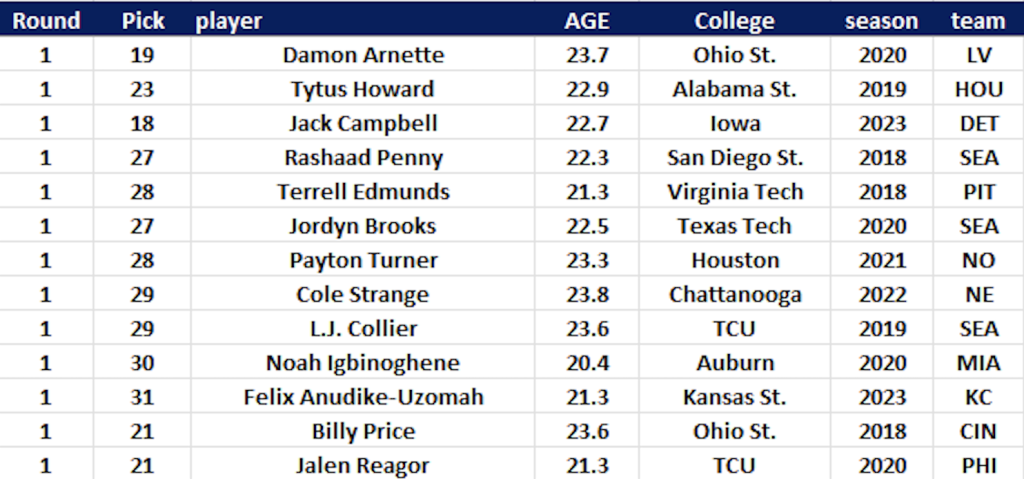 Ebből a 13 fős listából 10-en totális bustok lettek. Három játékosból lett értékelhető NFL-kezdő: Jack Campbell és Jordyn Brooks jó linebackerré váltak, illetve Tytus Howard lett egy korrekt támadófalember. A többiek jellemzően akkora csalódások lettek, hogy pályát is alig láttak profi karrierjük során. Arnette összesen 406 snapen volt pályán, Penny 396-on, Turner 675-ön, Anudike-Uzomah 583-on. A többiek játszottak, de olyan sok köszönet nem volt ebben.