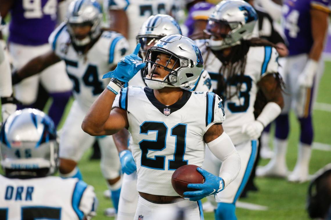 Brian Burns egy sack-versenyre készül Haason Reddickkel