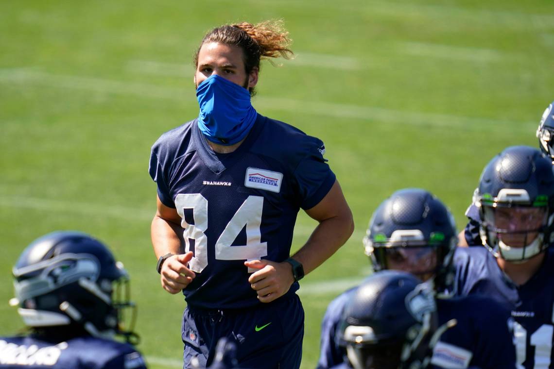 Russell Wilson úton Seattle-be, hogy részt vegyen a csapat OTA-in